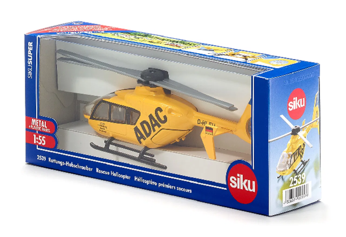 Nachbildung des ADAC-Rettungshubschraubers "Christoph". Das Modell ist robust und stabil, mit einem beweglichen Haupt- und Heckrotor sowie einer öffenbaren Heckklappe. Ein Großteil des Spielzeugmodells besteht aus Metall, was für hohe Stabilität sorgt, und es eignet sich sowohl für Fliesen als auch Parkett oder Teppich. Perfekt als Geschenk für kleine und große Fans von Rettungsdiensten und Hubschraubern, und eine ideale Ergänzung zu den siku Spielwelten.